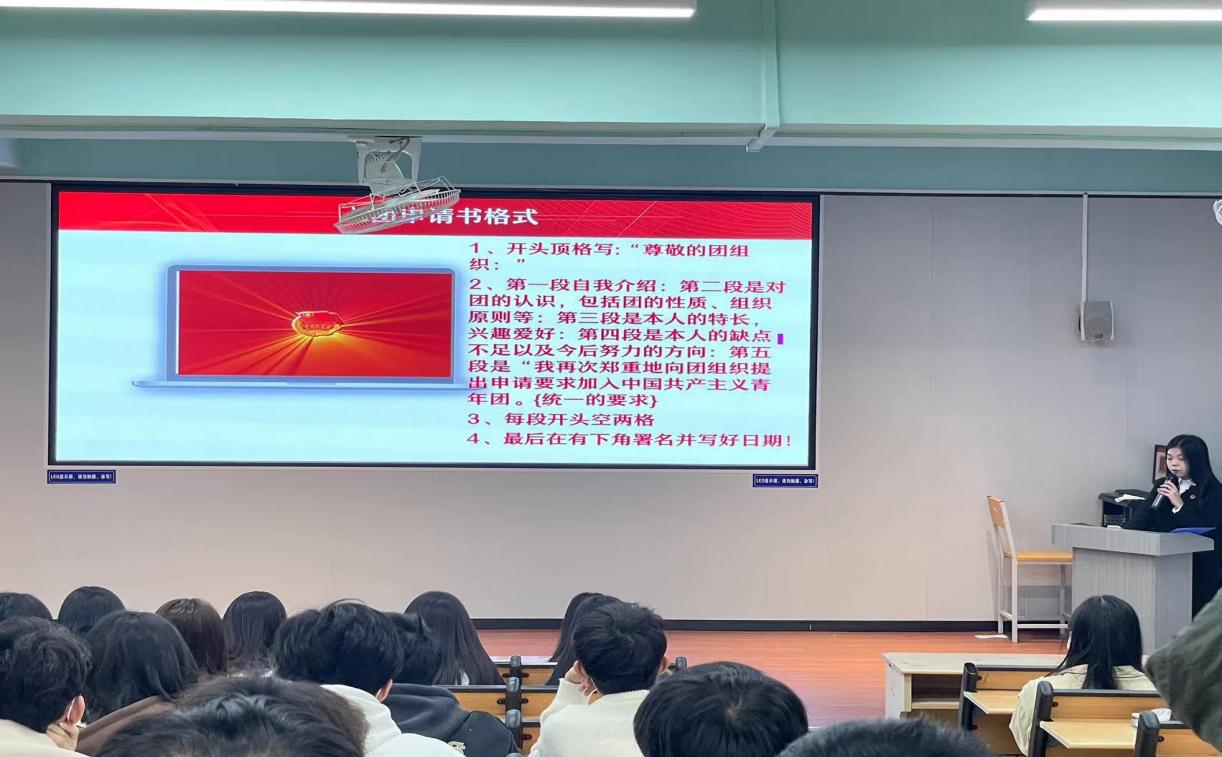 最后,系团总支组织部部长杨舒恒同学为大家讲解入团申请书的书写格式,并强调递交入团申请书的截止日期。