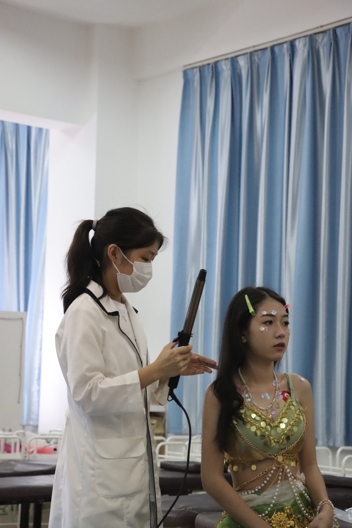 技能竞赛为广大技能人才提供了展示精湛技能、相互切磋技艺的平台,广大参赛选手奋勇拼搏、争创佳绩,充分展现新时代技能人才的风采。2023年5月18日晚上18:00—21:30卫生健康系在实训1栋509美容实训室开展了第十四届技能节“金手指”美容技能竞赛。莅临现场比赛的有经管卫健系邓伟鹏主任,主任助理冼洁老师,卫生健康系蔡飞老师、梁金英老师。