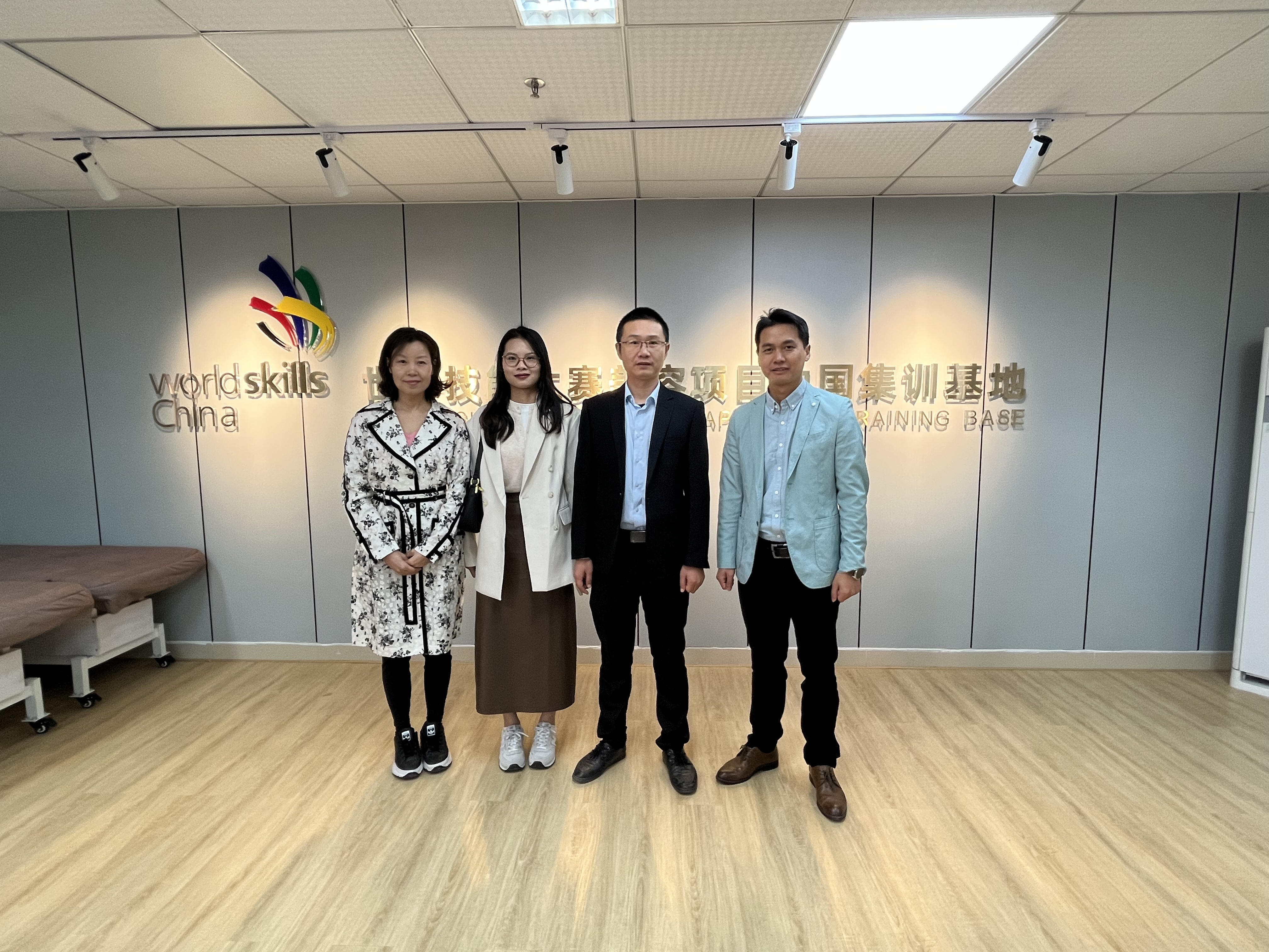 随后,我们在会议室与国际交流竞赛学院刘依星院长、杨克通、文小洁老师探讨美容保健专业课程与竞赛衔接教学、实训室建设、职业技能考证等。