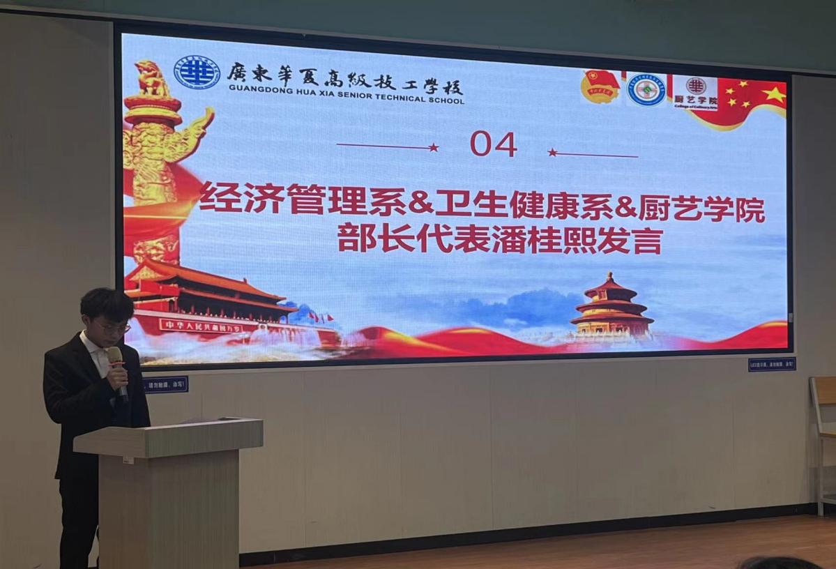 组织宣传部部长潘桂熙在发言中,向莅临大会的领导、老师致敬,热烈欢迎2025级新同学,介绍了团总支学生会各部门的职能,承诺学生干部会以身作则做好服务、帮助新同学,最后感谢领导老师的指导并祝愿新同学在校园收获成长。