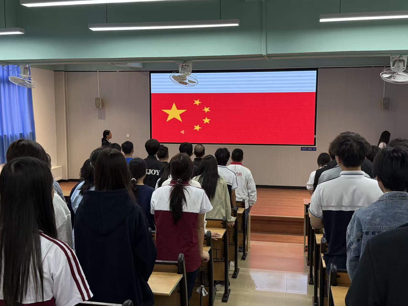 大会第一项 全体起立奏唱中华人民共和国国歌